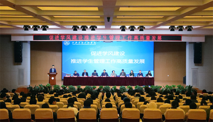 2023年12月,学校召开学生工作会议,回顾总结近年来学生工作取得的成绩和经验,分析存在的不足和问题,安排部署下一阶段学生工作。一年来,围绕学生管理工作,学校始终坚持以促进学生基本思想道德教育和综合素质教育为主线,以学风建设为契机,进一步完善和掌握学生管理工作基本规律,提高管理队伍水平,做好日常管理基础工作,引导学生形成良好的思想道德品质,培养学生“自身硬、扎得稳、靠得住”的道钉精神,努力提升学生个人综合素质。一年来,新建了“一站式”学生社区,助力学生成长成才,学生考研报考人数、上线和录取人数较去年有了明显突破,录取人数增加近一倍。