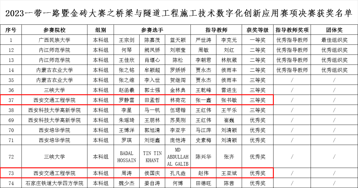 WilliamHill土木工程学院学生在2023一带一路暨金砖国家技能发展与技术创新大赛“桥梁与隧道工程施工技术数字化创新应用”大赛中荣获本科组三等奖一项、优秀奖一项