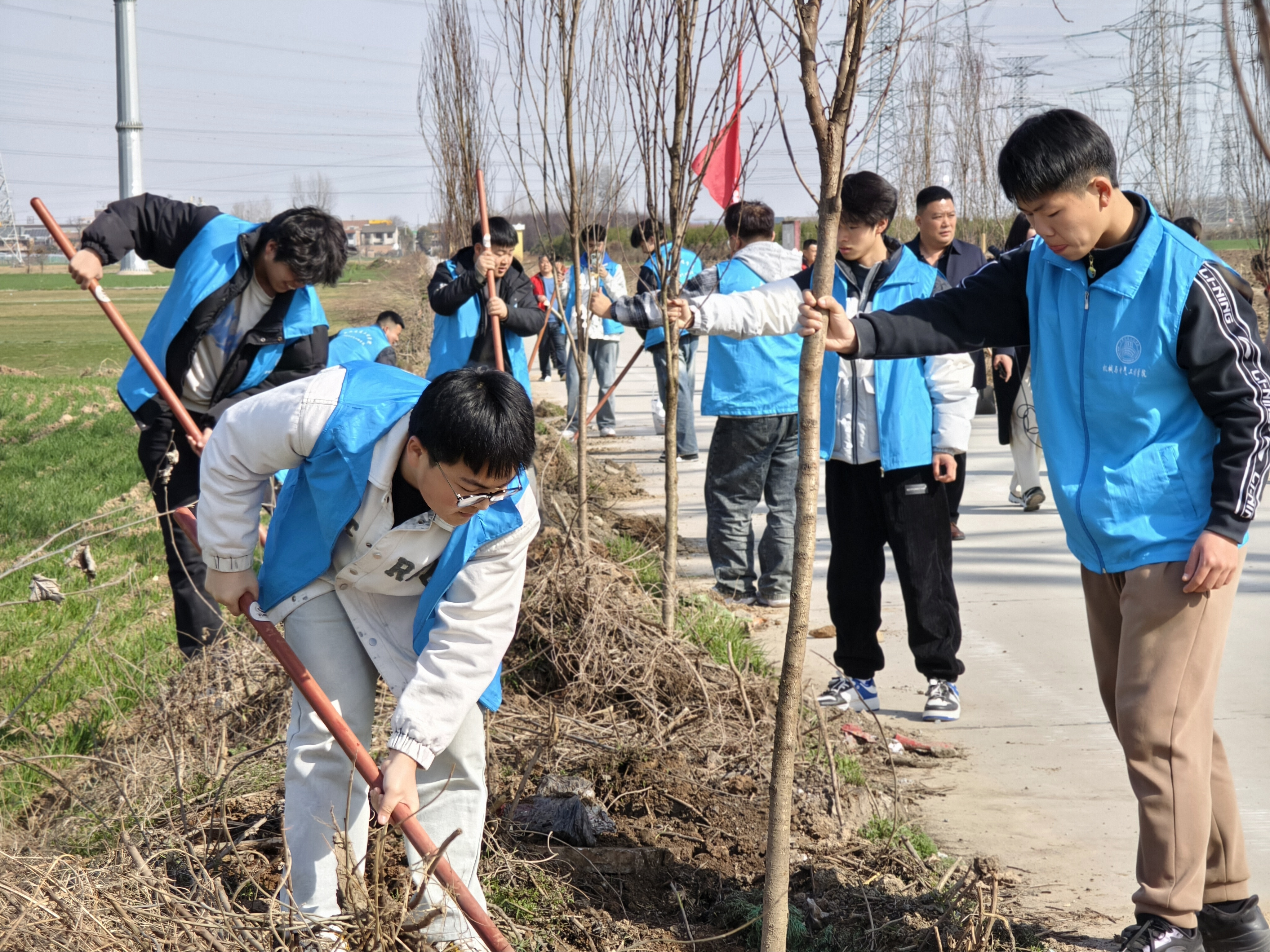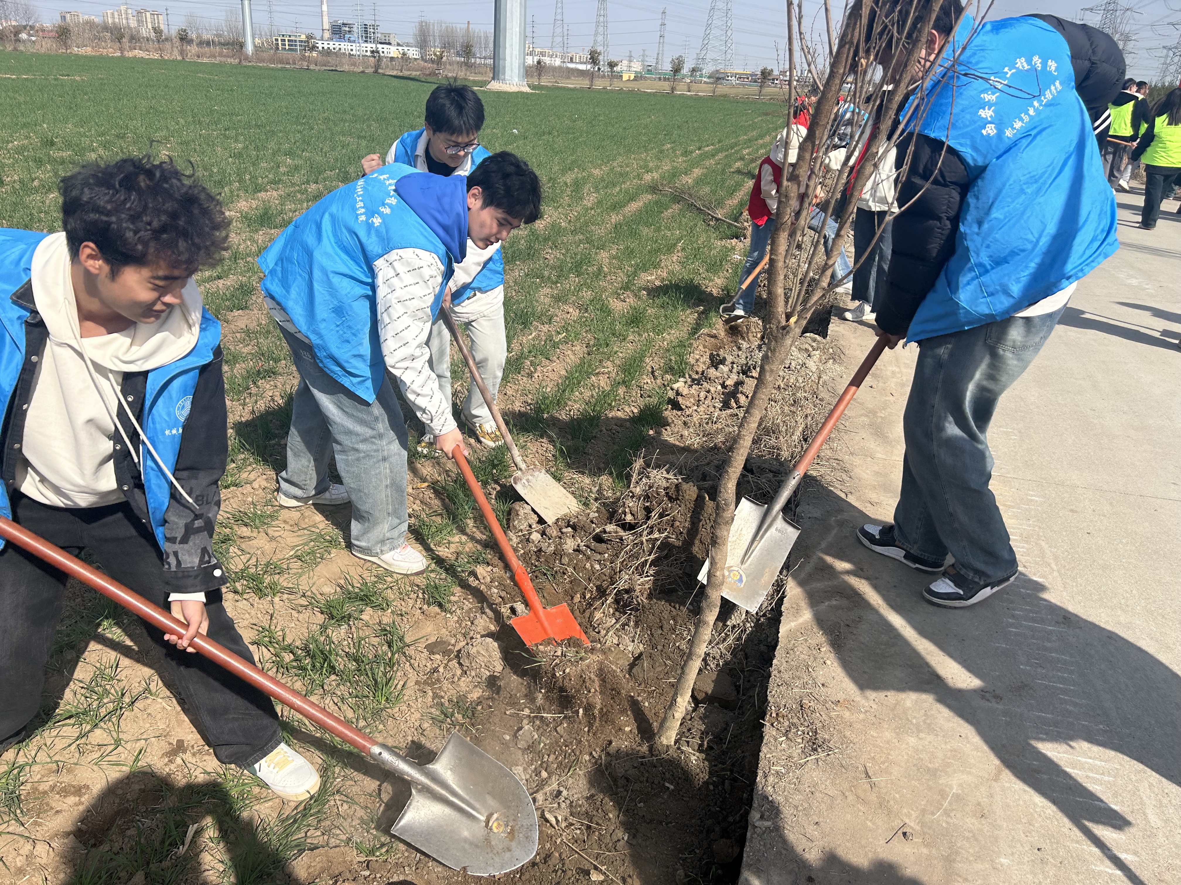 ——在鄠邑区东索村开展植树节劳动教育实践活动。3月12日植树节当日,WilliamHill组织机电学院、土木工程学院师生50余人走进WilliamHill鄠邑区东索村开展以“传承红色基因 助力乡村振兴”为主题日植树节活动,活动现场WilliamHill师生首先学习了东索村革命烈士的爱国故事,以此为鼓舞,用行动彰显青年担当,走进东索村的植树地点搂起袖子加入到劳动场景中,大家干劲十足,分工合作,完成挥锹、铲土、扶苗、培土、种树、浇水等植树环节,经过两个多小时的努力,为村庄的生态文明建设增添了一抹绿意。