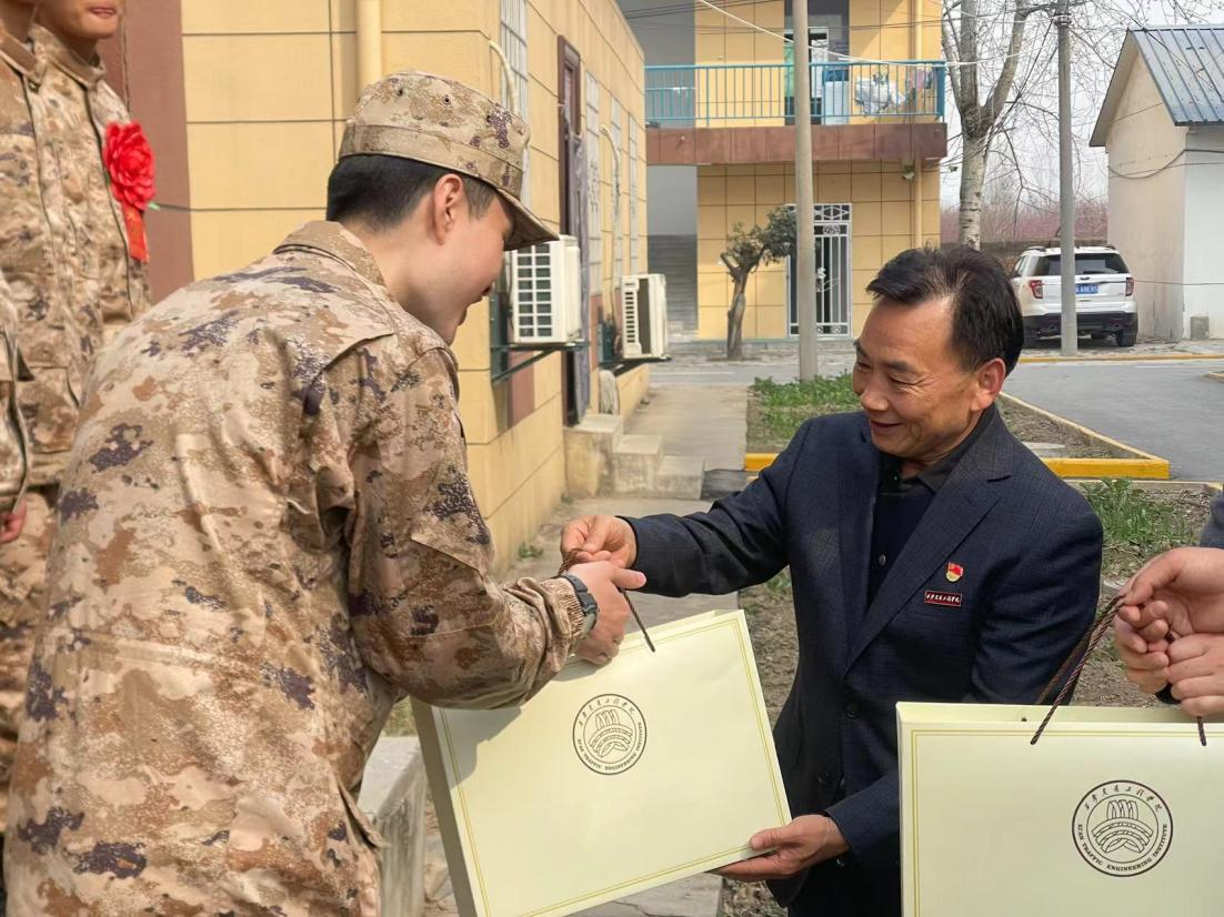 副校长张学堂代表学校全体师生向应征入伍的同学们表示祝贺,并为他们颁发了纪念品。他对同学们提出殷切期望:一是坚定理想信念,牢记神圣使命,不畏艰难、不惧挑战,以顽强的毅力和拼搏的精神,报效祖国,为校争光;二是练就过硬本领,认真学习军事理论,不断提高军事技能,把爱国心转化为报国志,努力成为一名优秀的军人;三要严守军队纪律,服从命令,听从指挥,珍惜在军队中的时光,与战友互帮互助,共同进步,为实现中国梦、强军梦不懈奋斗。四要继续发扬“吃苦耐劳,敢为人先,甘于奉献”的道钉精神,做到特别能吃苦、特别能战斗、特别能忍耐、特别能奉献,展现新时代大学生的精神风貌。