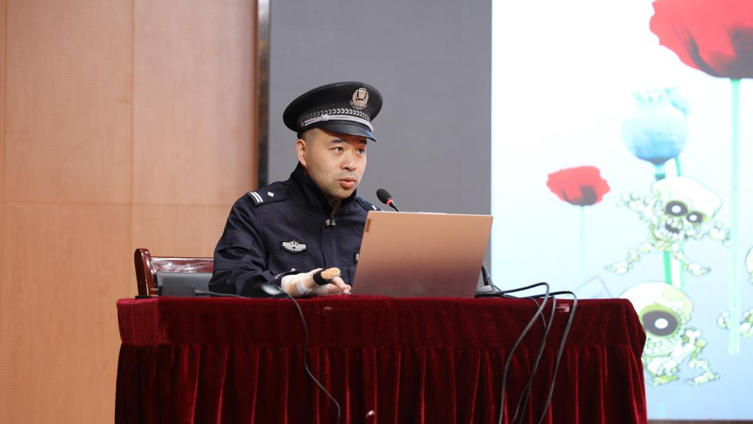 为进一步加强毒品预防教育工作,提升学生防毒、拒毒、禁毒意识,增强学生识毒防毒的能力,营造人人参与禁毒的良好氛围。3月13日,学校邀请西安鄠邑分局禁毒大队开展了“珍爱生命 远离毒品”禁毒教育主题讲座,副校长张学堂、副校长赵征、学生处、保卫处相关负责人、各二级学院党委书记、辅导员代表及部分学生参加本次讲座。讲座由鄠邑分局禁毒大队邢凯桦警长主讲。