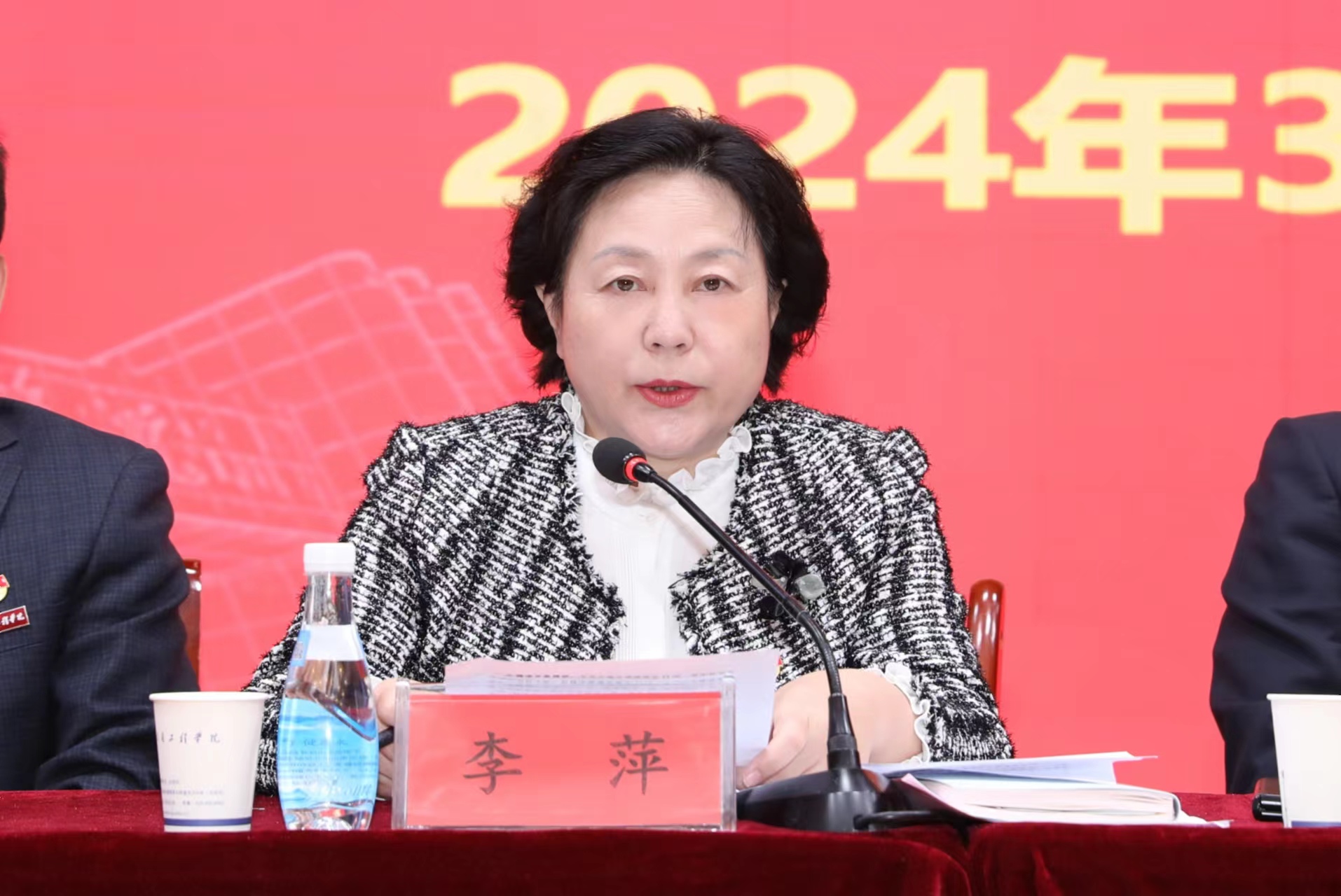 第二阶段会议由李萍书记主持,曹庆年校长宣读了《关于表彰2023年度先进单位 、优秀教师、优秀教育工作者、优秀处级干部的决定》,与会领导为获奖单位和个人颁奖;李萍书记分别与现代技术学院党委、公共课部党总支、机关党委签订了全面从严治党责任书;张晋生理事长分别与学生处、保卫处、人文与管理学院签订了安全稳定责任书。