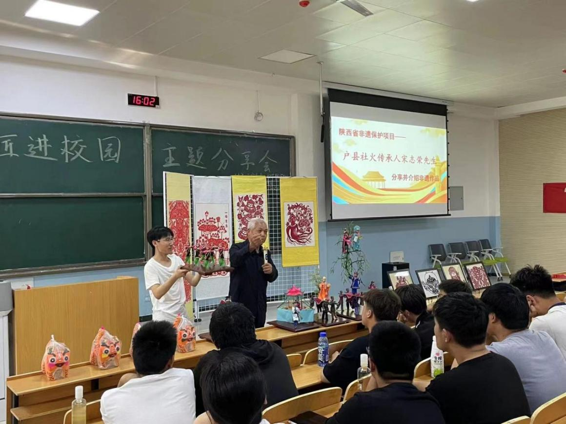 户县非物质文化遗产传承人杨彩霞女士走进学生课堂讲解剪纸文化