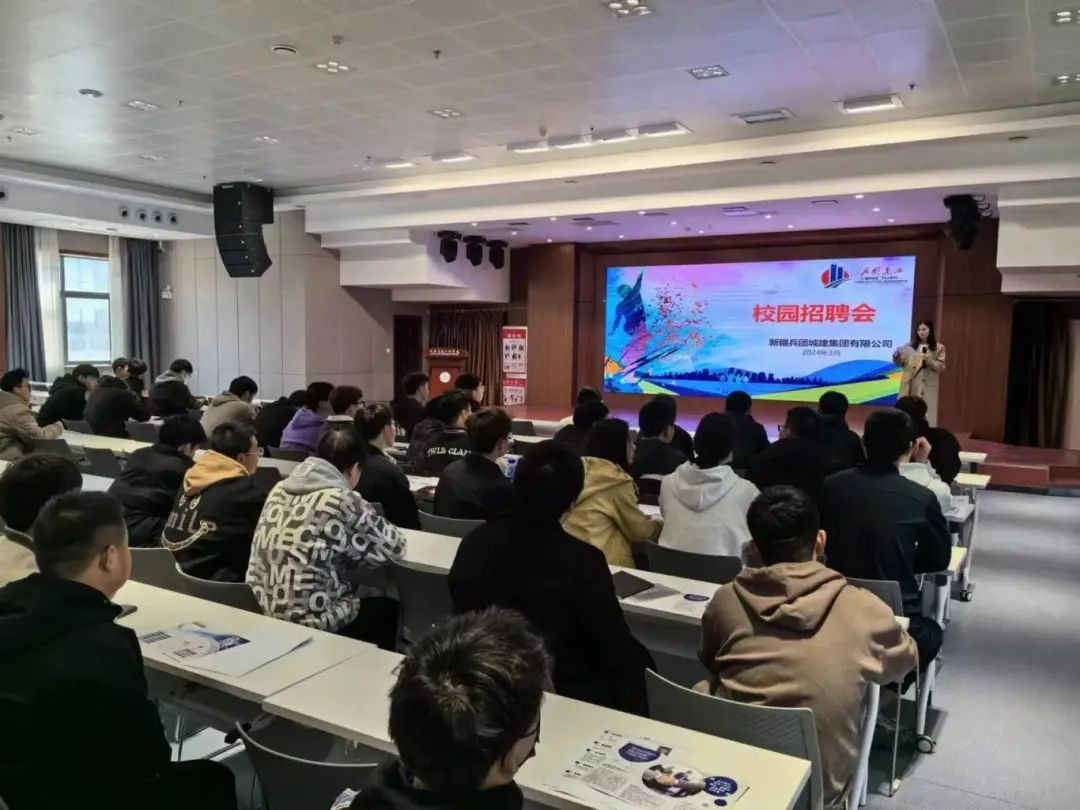 宣讲会上,新疆兵团城建集团有限公司招聘小组孔庆国同志通过视频、PPT展示等方式介绍了公司的基本情况、发展历史、未来前景等,并围绕公司资源与优势、人才培养体系、业务布局、企业岗位需求、薪酬福利等几个面进行宣讲。