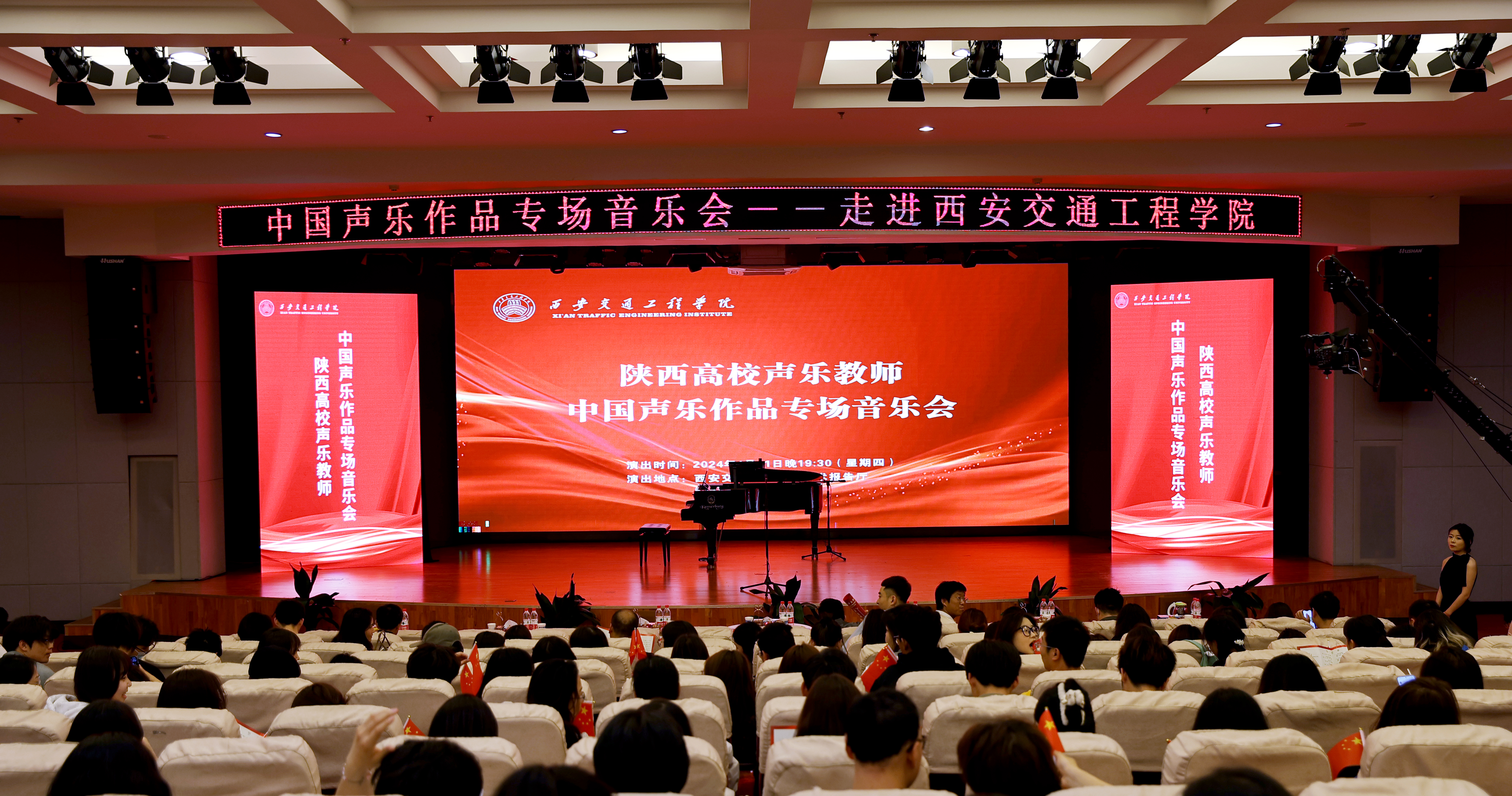 4月11日,陕西高校声乐教师《中国声乐作品专场音乐会》在学校学术报告厅成功举行。学校理事长张晋生、副校长吴伟、石广田、张学堂、赵征、党委副书记张庆生和600余名师生共同聆听了音乐会。