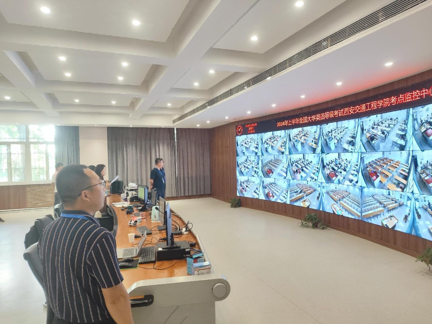 考试过程中,监考老师严格履行职责,认真负责地执行考试要求。试卷分发、监考过程均在全程录像监控下进行,确保无死角、无遗漏。考试严格按照CET考试操作规程执行,听力播放正常,考试时间点精确控制。各考场按规定时间收卷,试卷清点完毕后才允许考生离开考场,整个考试过程规范有序。