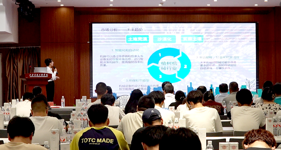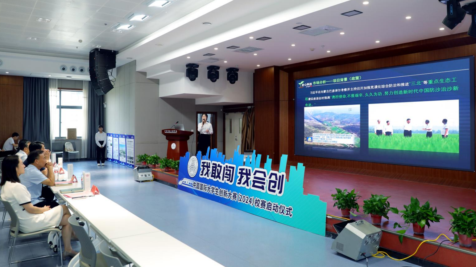 启动会上,第九届中国国际“互联网+”大学生创新创业大赛省赛优秀项目《匠心助农 科技兴林 —一种绿色能源操控下的一体式插苗机器人》、《予青--全地形多元智能植树一体机》分别进行了路演展示。