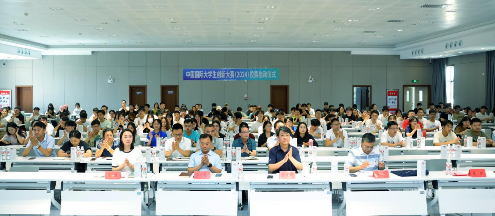 校长曹庆年教授宣布中国国际大学生创新大赛(2024)WilliamHill中文官方网站校赛正式启动。校长曹庆年、副校长吴伟、副校长张学堂、理事会办公室主任创新创新创业学院院长千红,创新创业学院副院长屈茹共同按下大赛启动按钮,一起开启本次大赛。