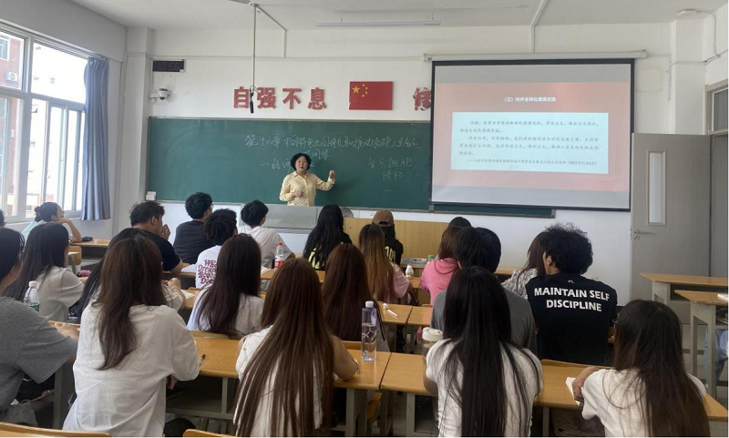 副校长石广田为学生讲述了一堂以“铸牢中华民族共同体意识”为主题的形势与政策课,石广田校长呼吁每一位新时代的大学生,要关注国际国内形势,正确认识党中央作出铸牢中华民族共同体意识的时代背景和重大意义,要认识到当今世界正经历百年未有之大变局,我国正处于实现中华民族伟大复兴关键时期,推动中华民族成为认同度更高、凝聚力更大的命运共同体至关重要;副校长张学堂为学生讲述了一堂以“坚持‘一国两制’和推进祖国完全统一”为主题的思政课。张学堂校长从如何全面准确理解和贯彻“一国两制”方针、为什么说“一国两制”是保持港澳长期繁荣稳定的最佳制度以及为什么说祖国完全统一的时和势始终在我们这一边三个方面向学生进行讲解,帮助学生全面深刻地理解这一主题的教学内容。张学堂校长呼吁每一名新时代的大学生,要提高政治站位,全面学习和理解“一国两制”制度。要热爱祖国,矢志不渝,努力做祖国统一的践行者;副校长徐炜为学生讲述了一堂以“学习贯彻党的二十大精神,助力学生全面发展——新时代大学生的使命与担当”为主题的思政课。徐炜校长主要从党的二十大报告的核心内容与精神、大学生的使命与担当和就业指导——助力学生学业和职业规划三个方面为学生做了深入的讲解。徐炜校长指出,在新时代,青年是祖国的未来,是民族的希望。大学生要牢记初心使命,不负时代重托,勇敢担负起时代赋予的重任。徐炜校长强调,大学生要想成长为新时代的建设者和接班人,要不断提升个人素质、坚定理想信念,要具有扎实的专业知识和技能,同时还要有强烈的社会责任感,要积极参与社会实践与志愿服务,关注国家的发展和社会的进步。徐炜校长希望同学们要认清形势,明确目标,积极行动,在学业和职业规划中做到有的放矢,扎实提升自身素质和能力。无论未来的道路如何,希望同学们都能坚定理想信念,不懈努力,为实现自己的职业梦想和人生目标而奋斗;副校长赵征聚焦“习近平新时代中国特色社会主义思想概论”课程中“建设社会主义生态文明”专题,从“为什么”“是什么”“怎么样”三个环节从理论和现实的维度为学生深入阐述新时代建设社会主义生态文明的必要性、重要内涵及如何建设美丽中国、推动全球可持续发展,并结合当下国内外热点与日常生活实际,教育引领学生深刻认识和把握党和国家面临的生态建设形势与任务,让学生从切身体会中加深理解,引导学子们勇敢肩负起时代赋予的重任,志存高远,脚踏实地,不负时代,不负韶华,为我国生态文明建设贡献青春力量;党委副书记、纪委书记、校工会主席张庆生给学生讲授了一堂以“构建人类命运共同体”为主题的思政课,张庆生主席寄语学生,作为新时代的青年,应当胸怀祖国,放眼世界,不仅要关心国家大事,更要具备国际视野,积极投身到推动构建人类命运共同体的伟大实践中去。她鼓励学生们,要学习外语,提升跨文化交流能力,了解不同文化,为促进不同文明间的对话与交流,为祖国繁荣发展做出自己的贡献;学校监事会主席王勇为学生讲授了一堂以“建设巩固国防和强大人民军队”为主题的思政课。王勇主席重点讲授了强国必须强军,军强才能国安。他呼吁每一名新时代的大学生,要提高政治站位,全面理解青春不只有诗和远方,更有家国与边关,把对祖国血浓于水、与人民同呼吸共命运的情感贯穿于学业全过程、融汇在事业追求中;财务总监刘建华向学生讲授了一堂以“弘扬长征精神,走好新时代长征路”为主题的思政课。刘建华总监重点讲述了长征的背景、长征精神内涵和新时代青年大学生如何走好自己的“长征路”,他引导学生要树立正确的人生观、世界观、价值观,培养学生学史明理、学史力行、学史增信、学史崇德的精神品质,同时教育和引导学生全面而准确地理解党的路线、方针和政策,坚定走中国特色社会主义道路的信心和决心;校长助理、教务处处长潘春辉围绕“铸牢中华民族共同体意识”这一主题,将习近平新时代中国特色社会主义思想融入课堂,引导学生要珍惜大学时光,立德为先,学业为重,走在新时代的潮头,做“立大志,明大德,能吃苦,担大任”的新时代好青年。希望同学们能在实践中弘扬道钉精神,不断增强本领,为民族复兴贡献青春力量。