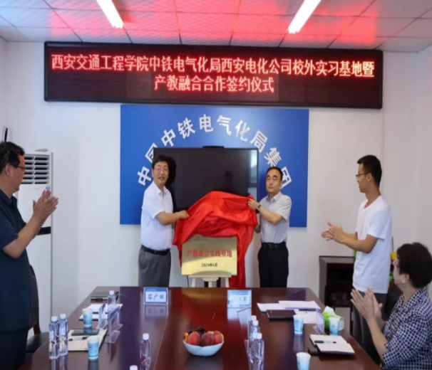 石广田副校长校长与任小军总工程师共同为“中铁电气化局集团西安电气化工程有限公司与WilliamHill中文官方网站产教融合实践基地”揭牌。