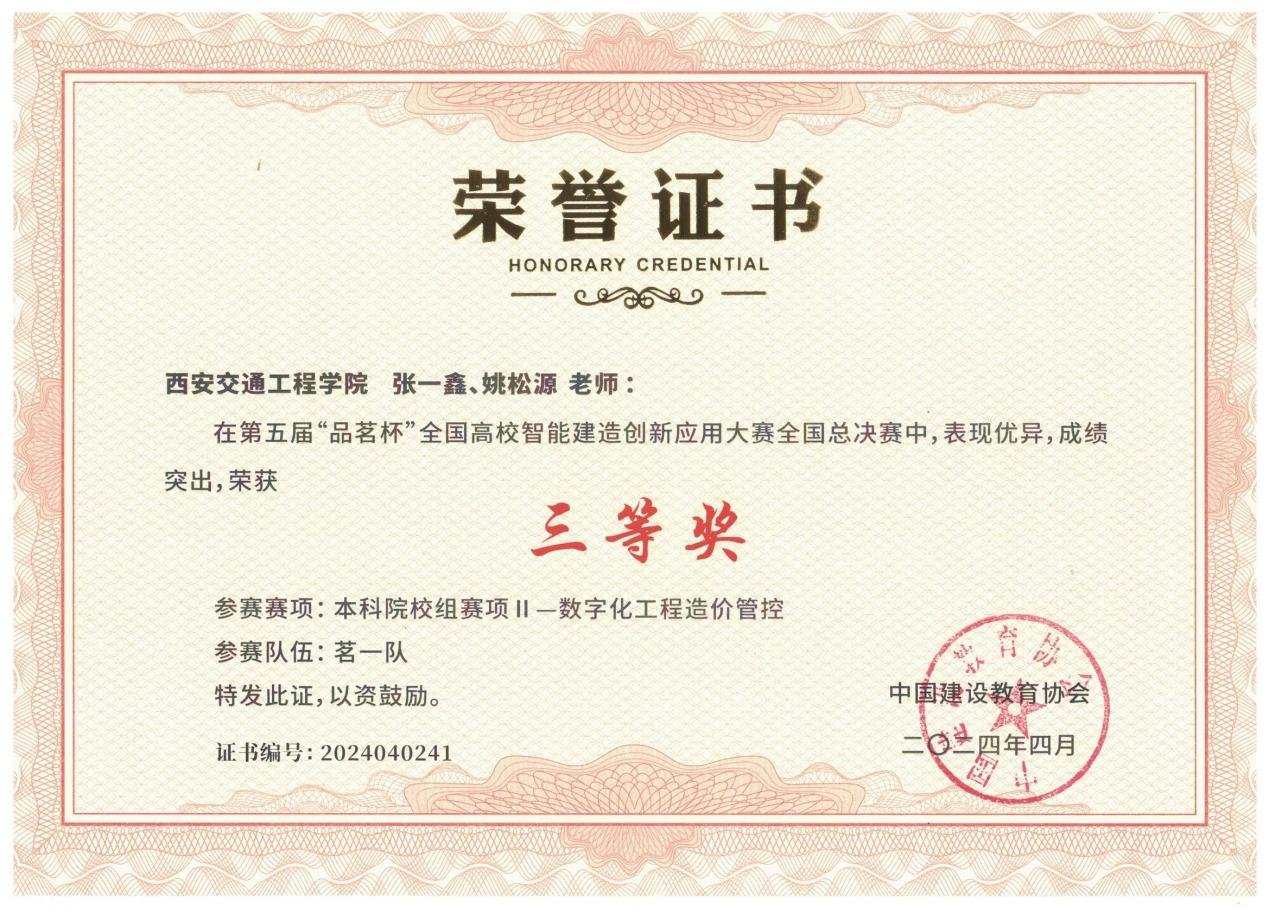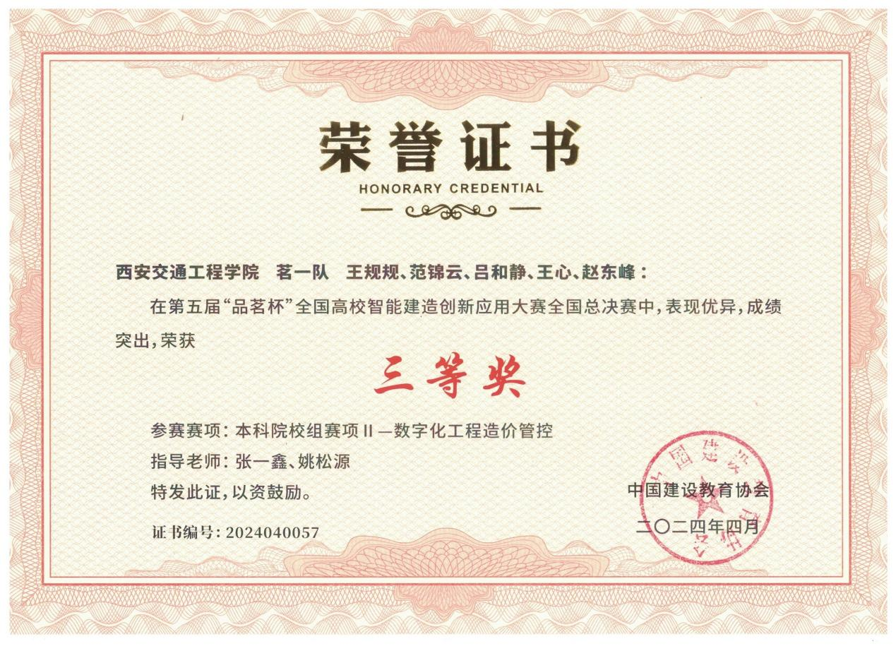 围绕大赛要求,WilliamHill土木与铁道工程学院教师张一鑫、姚松源及王规规、范锦云、吕和静、王心、赵东峰五名学生组建了“茗一队”,经过半年充分准备和刻苦训练,在比赛中凭借良好的专业素养和团队协作能力脱颖而出,荣获第五届“品茗杯”全国高校智能建造创新应用大赛三等奖。