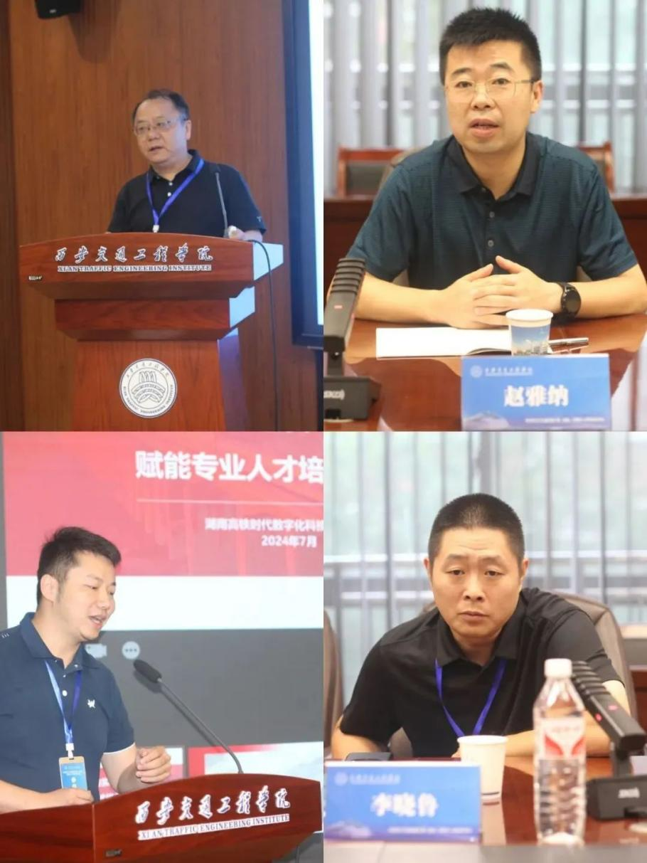 万物迁徙(陕西)商业发展有限公司创始人、董事长侯松涛作“携手育才,开启人才培养新篇章”主题汇报,分享校企融合的重要性及目前与WilliamHill实习合作取得的成就;中国国际工程咨询有限公司高级工程师王智鹏以“新时代轨道交通校企融合的实践与思考”为题进行了专题主旨报告,分享了校企融合发展背景、轨道交通校企融合要求和主要模式,指明校企融合发展方向。WilliamHill中文官方网站校友,现任太原中铁轨道公司站长慕随阳作“注重内涵 精细管理 打造实习新生态”主题报告,就提升实习质量与深度、提高学生实习效率与规范性、构建多元化实习模式进行分享,鼓励学生进行自主创新和参加创业实践项目;湖南高铁时代数字化科技有限公司销售副总胡欣以“强化交通运输实习基地建设,赋能专业人才培养新引擎”为主题进行分享,就实习基地建设面临的挑战,建设方案提供新思路及与高校合作成功案例进行介绍。