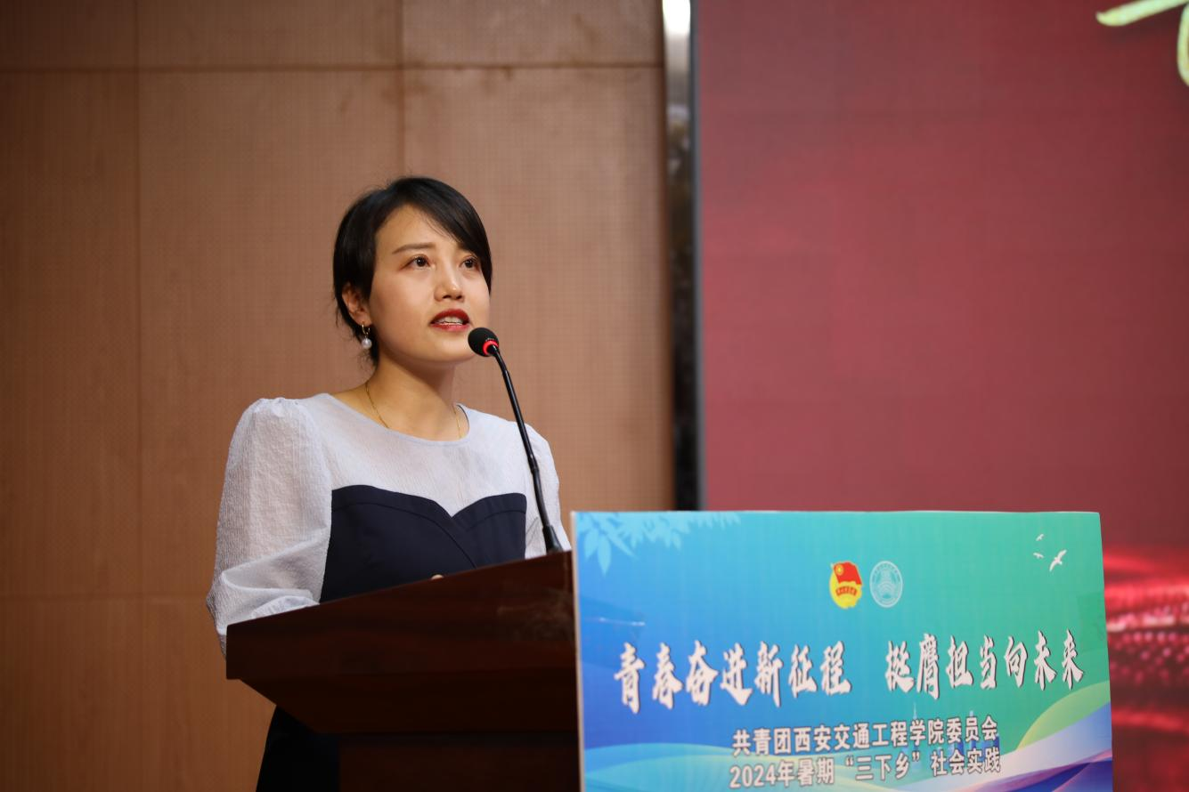 仪式在激昂的国歌声中拉开帷幕。校团委书记王小英从“三下乡”社会实践活动团队的主题、内容及专项活动、团队建设及工作要求、注意事项等方面对2024年暑期“三下乡”进行详细安排。