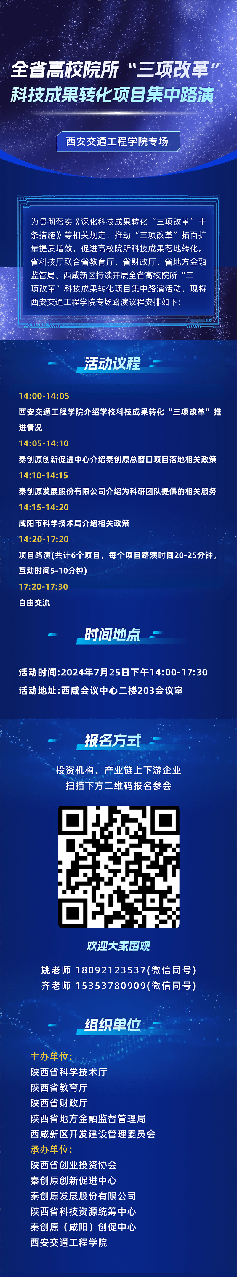陕西省科学技术厅——全省高校院所“三项改革”科技成果转化项目集中路演预告(西安交通工程学院专场)