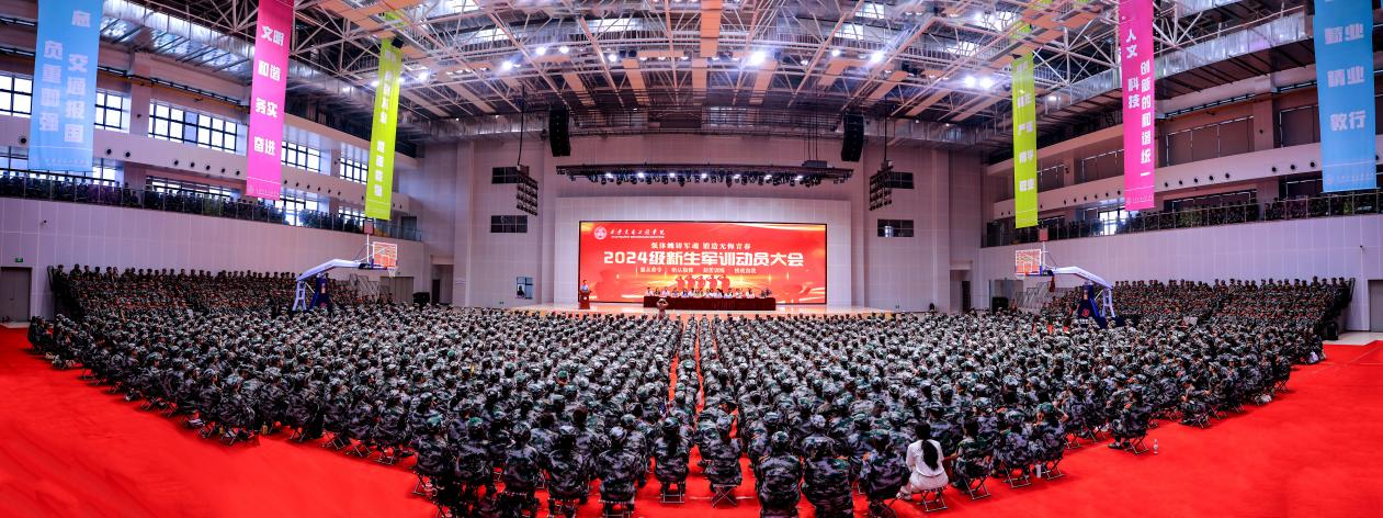 伴随雄壮的国歌声,国旗冉冉升起,全体师生齐唱国歌,拉开2024级学生军训动员大会的序幕。