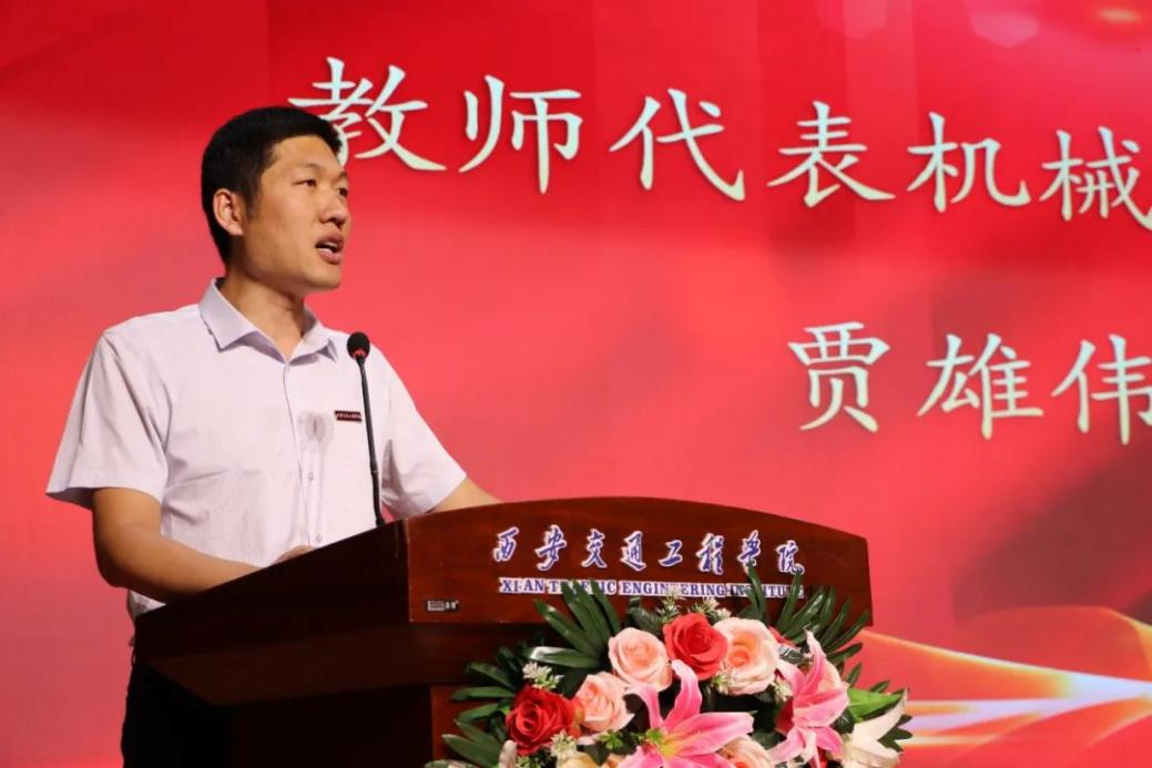 机械制造教研室主任贾雄伟作为教师代表发言,他强调学生要树立正确的教育观、学生观、教师观,培养良好的师德师风;系统掌握教育学基础理论,理解教育的基本原理、规律和方法,深入学习所教学科的专业知识,形成扎实的学科素养和教学能力。