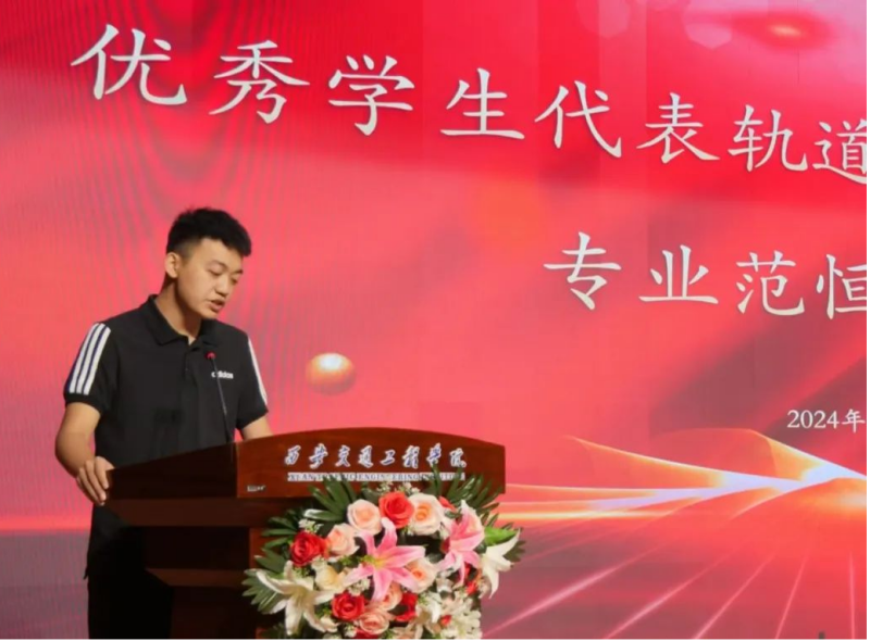 轨道交通电气与控制专业范恒祯作为优秀学生代表发言,他强调大学生活意义在于全面发展,鼓励学生们参与社团、志愿服务与科研创新,丰富人生体验,增强社会责任感。车辆工程专业张嘉明作为新生代表发言,大学生活是我们人生旅途中的一个重要里程碑,它不仅是我们继续深造的平台,更是我们成长为独立个体的关键时期。在这里,我们将探索知识的海洋,结识志同道合的朋友,明确人生的方向。
