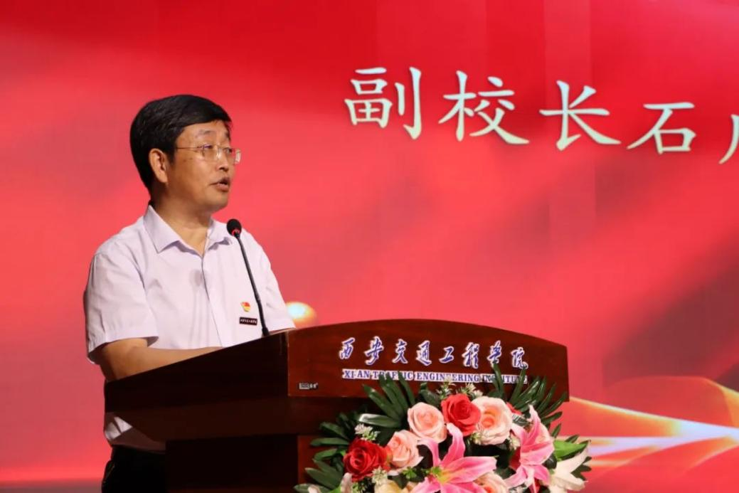 副校长石广田发表讲话,他表示,大学是个人成长与社会价值塑造的平台。是知识与能力的熔炉,学生应广泛学习,勇于探索,同时注重道德修养与实践能力的培养。并对新生提出以下四点期望:一,秉持道钉精神,坚定而执着;二,保持好奇心和求知欲,勇于探索未知;三,珍惜同窗情谊,共同成长进步;四,树立正确的价值观和世界观,成为有担当、有作为的新时代青年。