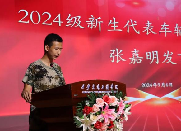 车辆工程专业张嘉明作为新生代表发言,大学生活是我们人生旅途中的一个重要里程碑,它不仅是我们继续深造的平台,更是我们成长为独立个体的关键时期。在这里,我们将探索知识的海洋,结识志同道合的朋友,明确人生的方向。