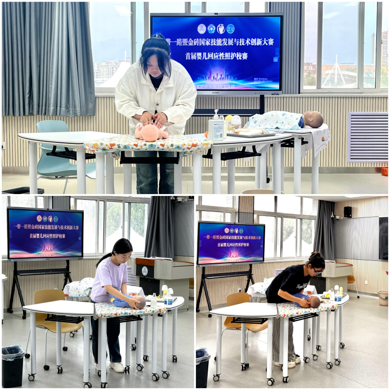 在比赛中,选手们展现出扎实的专业基础、深刻的照护理念以及出色的应变能力。经过激烈角逐,选拔出了数名表现优异的选手,他们将代表学院参加即将到来的金砖大赛“首届婴儿(0-1岁)回应性照护”全国区域赛。