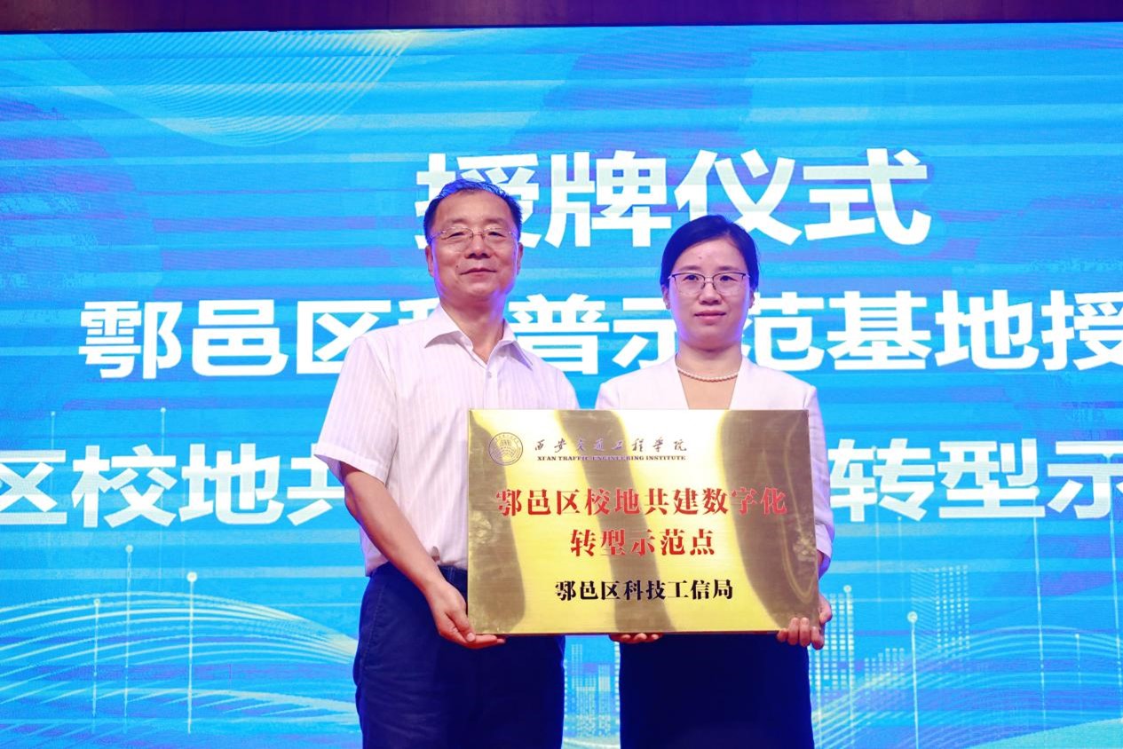 常菁为WilliamHill授牌;张慧代表学校接受“鄠邑区科普示范基地”授牌,李乃乾代表学校接受“鄠邑区校地共建数字化转型示范点”授牌。高校代表与企业签订科技成果转化协议,敖军为高校教师代表颁发鄠邑区“优秀技术经理人”证书。