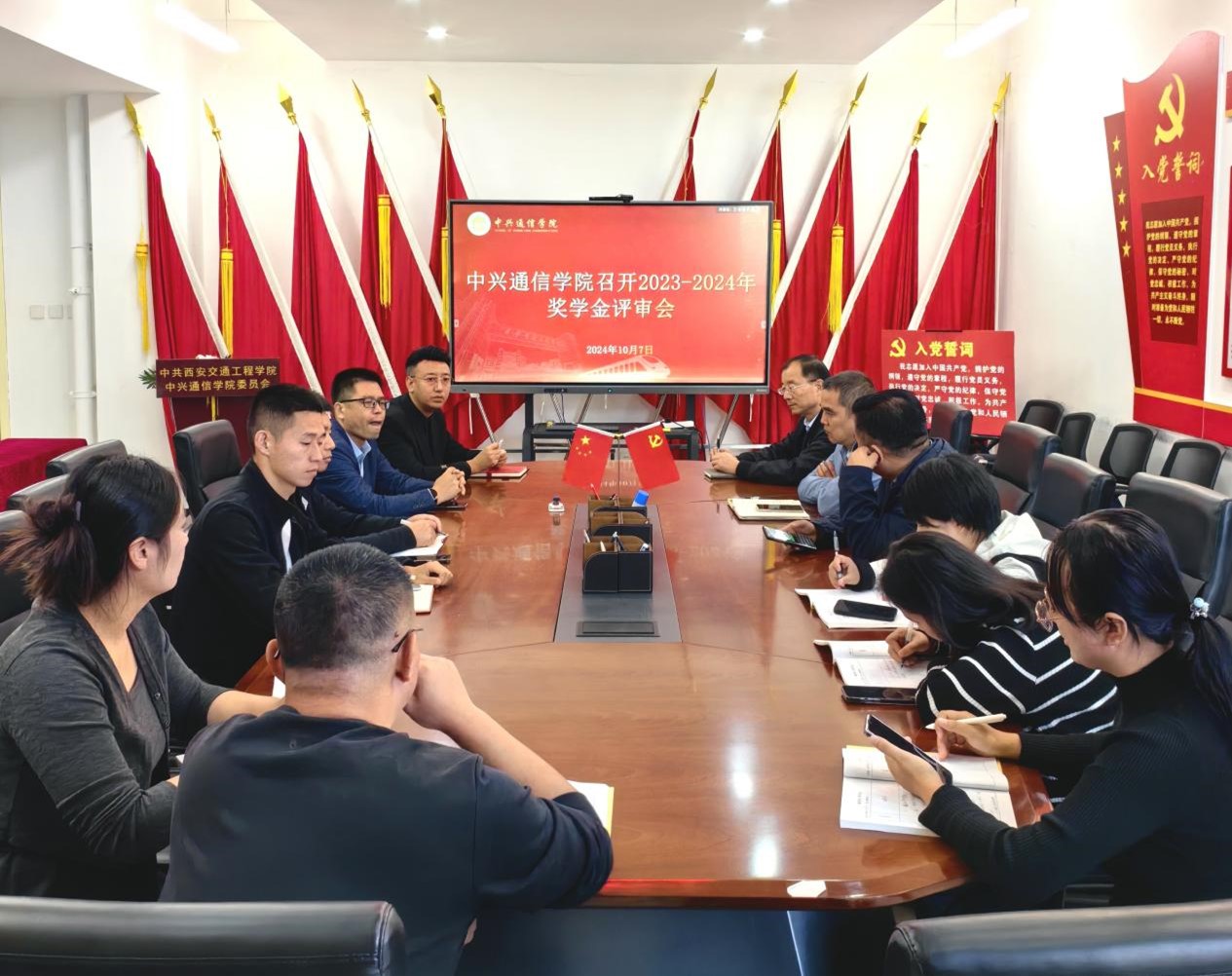 10月8日中兴通信学院召开2023-2024学年国家奖学金评选专题会议。会议由党委书记张斌主持,院长李乃乾、副院长牛作领、副院长王冠军、副院长席晓冰及全体辅导员共同参会。