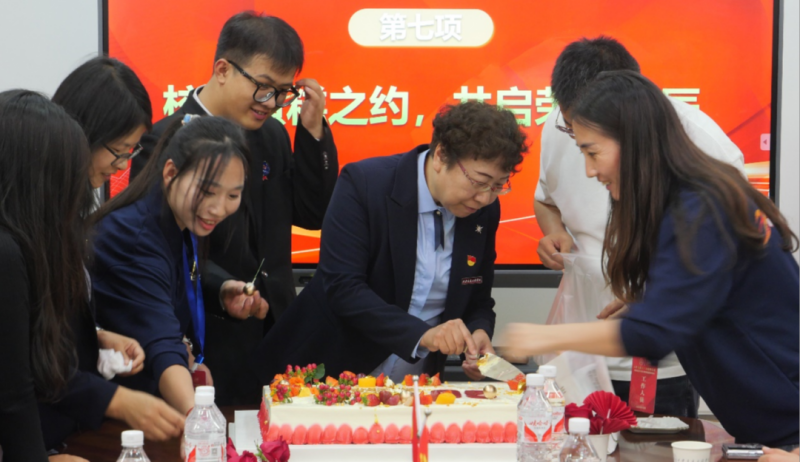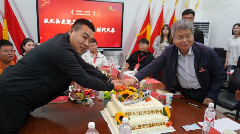 继续教育学院张磊与校友代表分享校庆蛋糕