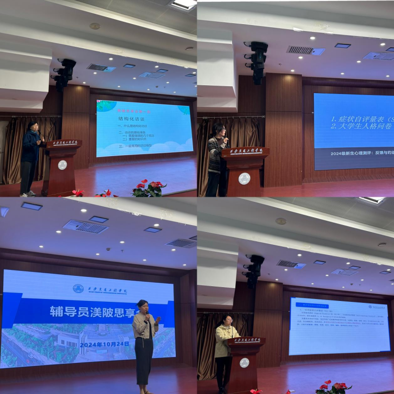 心理咨询中心教师们围绕主题“从心开始,打造实力”展开分享。刘明侠老师做了结构式心理访谈讲座,结合新生测评筛查工作,讲述结构式心理访谈的几个重要观念和心理健康知识准备,介绍几个结构式心理访谈模版。张娟和钟倩老师主要介绍了本次新生测评的主要情况。张耀元老师以动人心弦的案例,讲述辅导员是学生立足社会的导师,呼吁辅导员善待每一个学生,辅导员成为学生健康成卡的引领者。