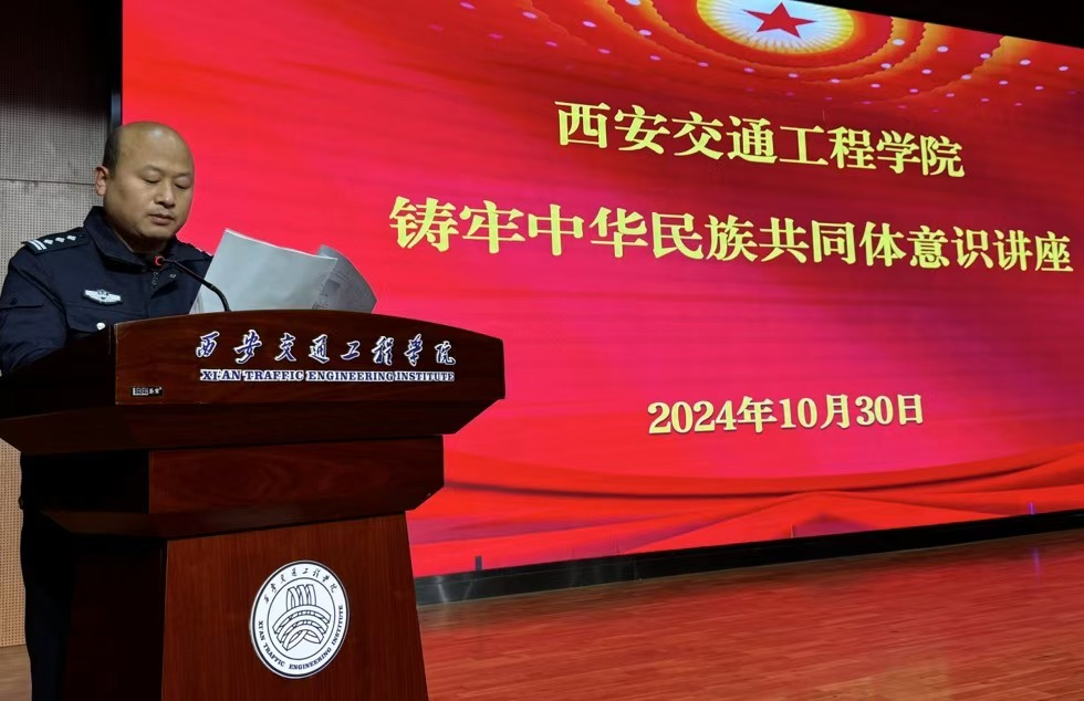 为深入贯彻落实习近平总书记关于加强和改进民族工作的重要思想,铸牢中华民族共同体意识思想基础,增强学生民族认同感与自豪感,有效促进各族学生交往交流交融,10月30日,学生处少数民族学生管理工作室在学术报告厅举办“铸牢中华民族共同体意识”专题讲座。讲座特邀西安市公安鄠邑分局国保大队副大队长刘新震同志、西安市公安局反恐支队一级警长王保人同志主讲。学校副校长张学堂、学生处处长胡省利、学生处副处长黄元元出席了讲座,全体辅导员及学生代表参加讲座,讲座由学生处副处长黄元元主持。