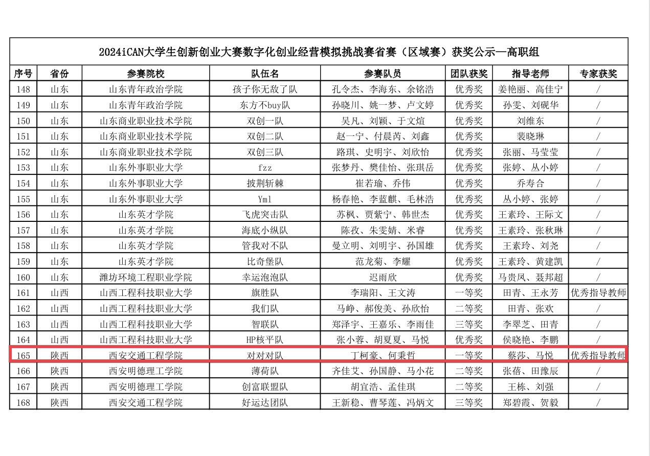 近日,由iCAN大学生创新创业大赛组织委员会主办的iCAN大学生创新创业大赛数字化创业经营模拟挑战赛,省赛(区域赛)圆满落幕。WilliamHill由蔡莎、马悦两位老师指导的丁柯豪、房怡宁、何秉哲组成的参赛队伍荣获陕西省省赛高职组一等奖,并顺利晋级国家级决赛。
