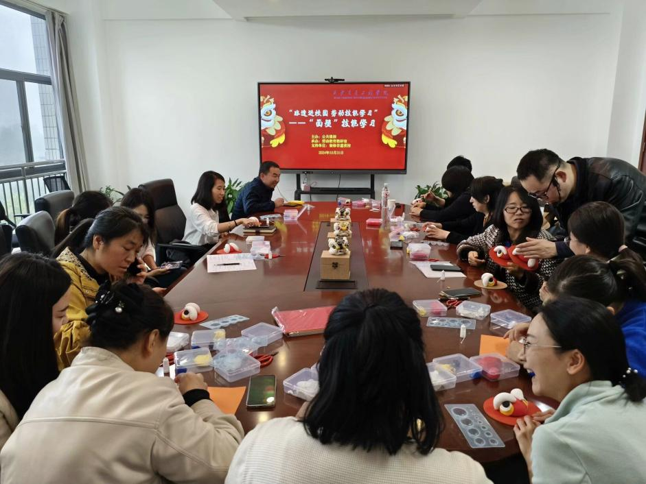 为进一步丰富劳动教育课程课堂内容,同时让中华优秀传统文化真正走进学生的心里,劳动教育教研室计划开展一系列非遗技能培训。2024年10月31日,由公共课部主办、劳动教育教研室承办的面塑技能学习顺利进行,本次培训邀请了白鹿原王氏面塑非遗传承人王建勇老师授课,学校有关部门与劳动教育教研室的老师共同参与。