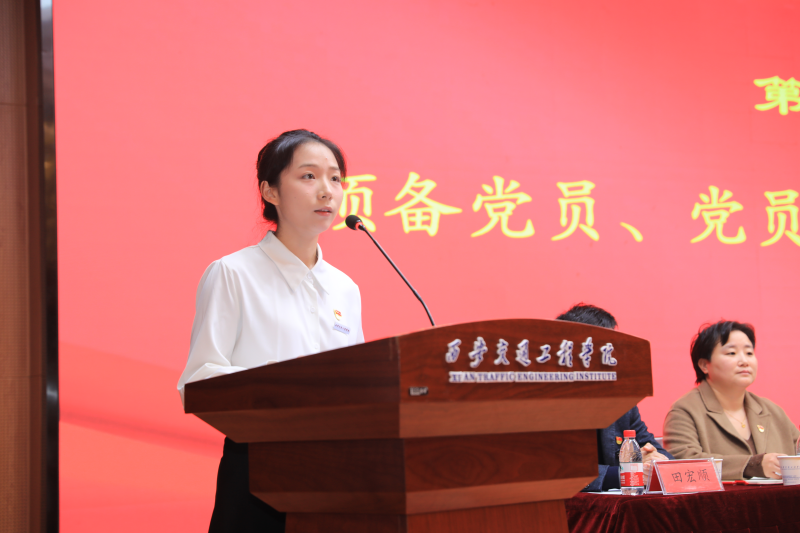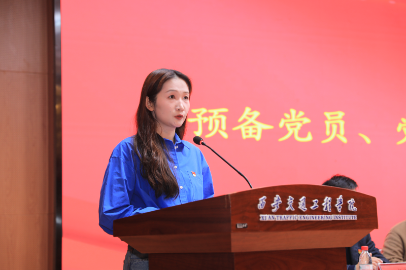 马克思主义学院教师邱豆豆、土木与铁道工程学院2101班学生连铭洋分别代表教师党员和学生党员上台发言。他们表示,要用党的创新理论成果武装头脑,坚定理想信念,践行初心使命,在工作和学习中不断发挥党员先锋模范作用,为推动学校科学发展、中华民族伟大复兴贡献青春力量。
