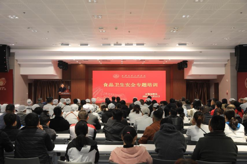 燕晨征就学校食堂食品安全进行了“十统一六到位”管理模式的培训,并结合具体案例,阐述了食品安全管理的重要性和紧迫性。