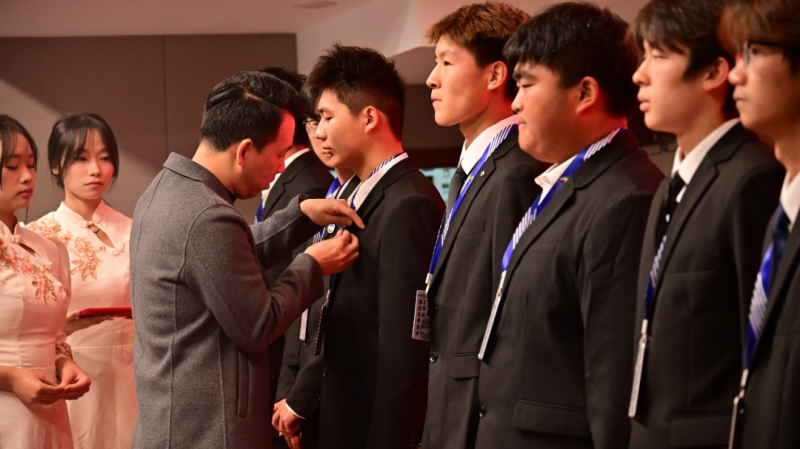 交通运输学院党委书记兼副院长钱穆萨为学生佩戴党徽