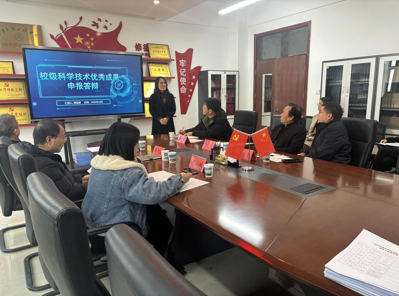 会议伊始,李宗孝介绍了评审会的目的,是为了通过专家评审会遴选产生优秀成果推荐参加2025年度陕西高等学校科学技术研究优秀成果的认定。随后,李宗孝介绍了答辩人汇报内容、专家质询细则和答辩要求。