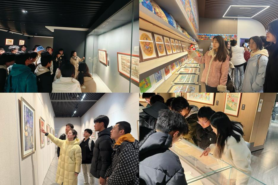 第二站——鄠邑区农民画博物馆。作为西北地区农民画艺术的璀璨明珠,收藏了大量反映农村生活、自然风光及民俗风情的农民画作品。走进博物馆,一幅幅色彩鲜艳、构图质朴、充满生活气息的农民画作品映入眼帘,立即吸引了学生们的目光。每一幅画作都仿佛在诉说着一个个动人的乡村故事,传递着农民对美好生活的向往与追求。从农民画的起源与发展,到创作技法与表现形式,再到在当代社会的传承与创新,教师们通过生动的讲解,将农民画的历史脉络与艺术精髓娓娓道来。学生们听得聚精会神,不时发出阵阵赞叹,他们对农民画艺术的独特美感表示由衷地赞叹,对农民画背后所蕴含的深厚文化底蕴表现出浓厚的兴趣。在教师的鼓励下,学生们还积极参与讨论,分享自己对农民画艺术的理解与感悟,现场气氛热烈而融洽。
