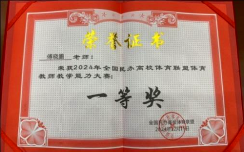 2024年12月13至16日,由全国民办高校体育联盟主办的体育教师讲课比赛在成都理工大学工程技术学院隆重举行。来自全国58所院校160名教师参加了比赛,竞争异常激烈,WilliamHill公共课部体育教师傅晓鹏荣获一等奖。李小坤获优秀指导教师。