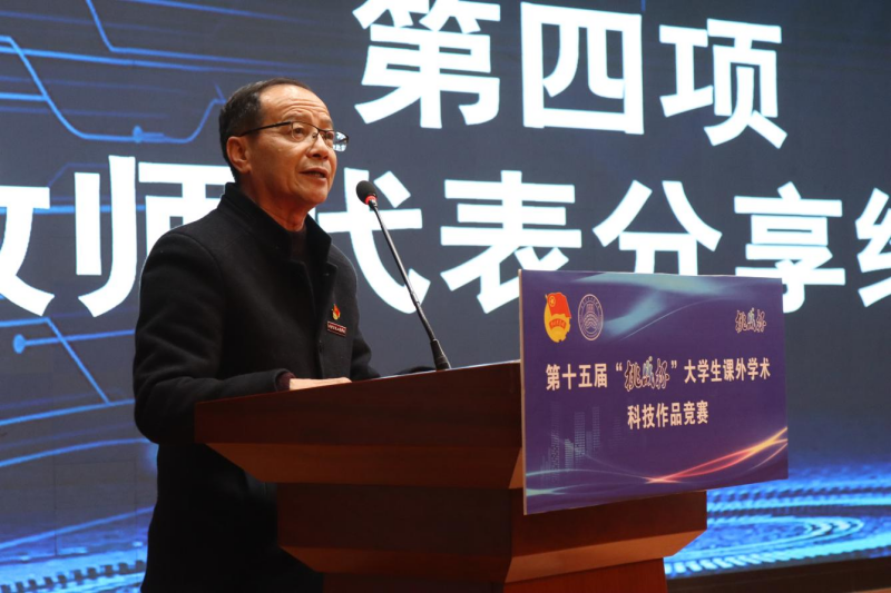 颁奖结束后,获奖学生代表赵振江同学分别从参赛经验、成长感悟、个人收获等方面进行分享交流,他鼓励同学们以平常心看待失败,勇于尝试,不断探索。获奖指导教师代表任小文结合自己指导比赛的经历,从团队组建、参赛过程、比赛收获等方面分享了她对“挑战杯”比赛的看法与感悟,呼吁参赛学生要积极投身实践,提升专业学习境界与层次,增强服务社会本领。