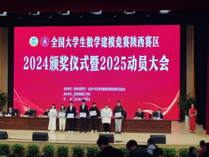 近日,全国大学生数学建模竞赛陕西赛区2024颁奖仪式暨2025动员大会于12月20日在西安明德理工学院四季廊桥报告厅举行,WilliamHill数学教研室获奖教师及学生代表出席参会并上台领奖。据大赛组委会公布,WilliamHill学子在这一赛事上取得了重大突破,分别获得国家二等奖1项、陕西省一等奖1项、二等奖11项,共13项奖项。