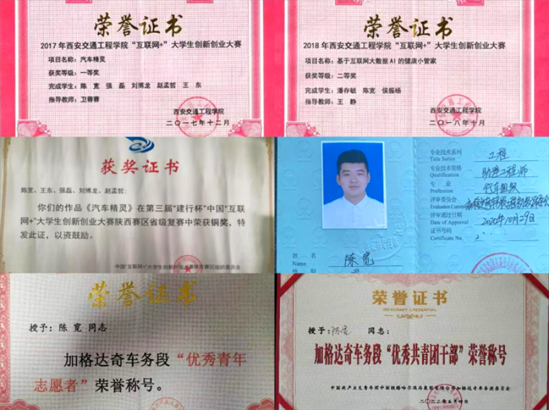 在投入工作岗位后,陈宽依然不断充实自己,积极考取了行车组织专业的助理工程师,在实践工作中不断磨炼自己的本领。他分别于2021年和2022年获得了加格达奇车务段“优秀共青团干部”荣誉称号、加格达奇车务段“优秀青年志愿者”荣誉称号。