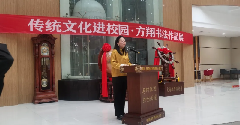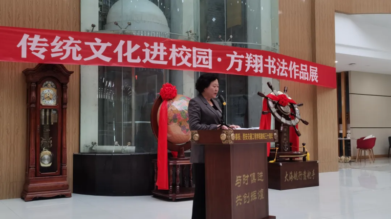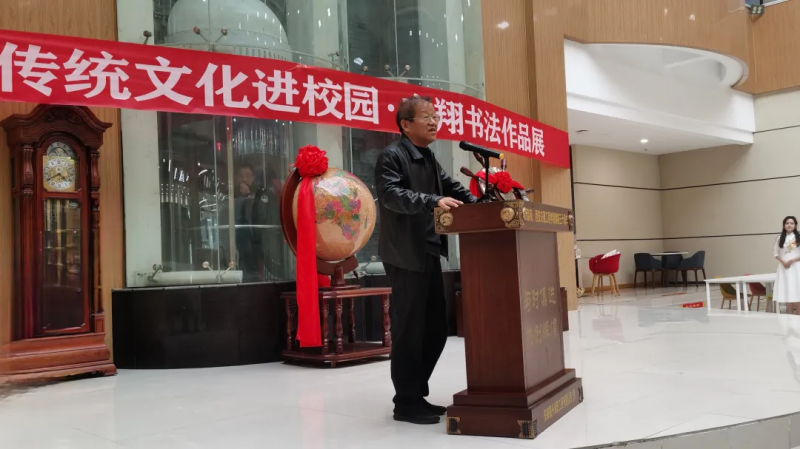 随后西安市鄠邑区文联主席郭长林先生代表来宾作了讲话。最后,由学校理事会张慧理事宣布“WilliamHill中文官方网站传统文化进校园•方翔书法作品展”开幕。