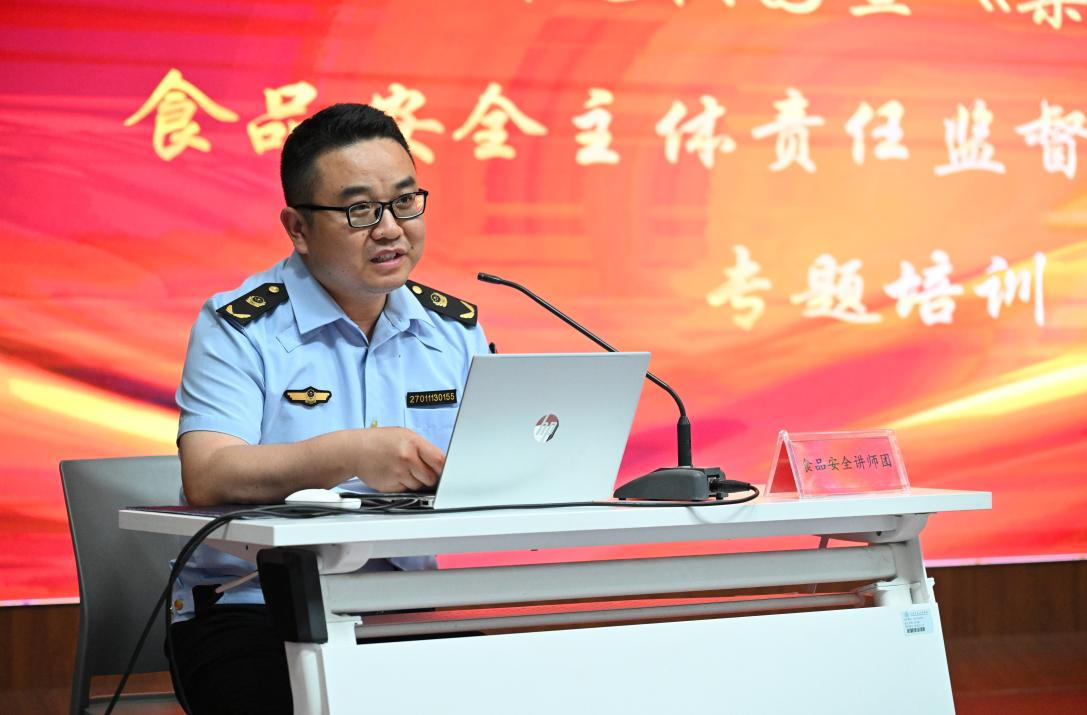 会上,鄠邑区市场监督管理局餐饮管理科科长燕晨征聚焦当下食品安全监管重点,对国家市场监管总局发布的98号令进行了全方位、深层次的详细解读。燕科长深入浅出地讲解了该号令中各项条款,明确学校餐饮主要负责人、食品安全总监、食品安全员的职责,强调学校要建立健全“日管控、周排查、月调度”工作机制的重要性,让每一位参会人员清晰认识到食品安全无小事,必须严格遵循法规标准,确保每一道环节都万无一失。