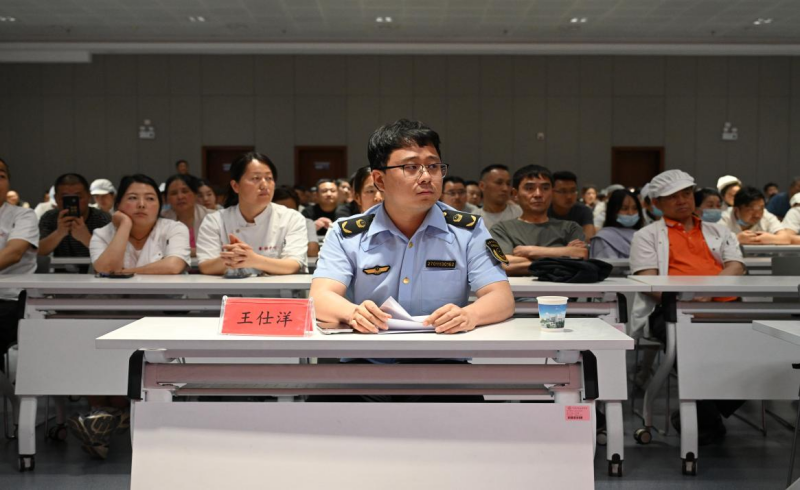 随后,王仕洋同志针对校园食品安全中的“十统一六到位”规范要求展开了细致入微的培训。以实例为依托,为后勤工作人员与餐饮从业者们明确了日常操作中的具体规范,确保大家在实际工作中有章可循、有据可依。