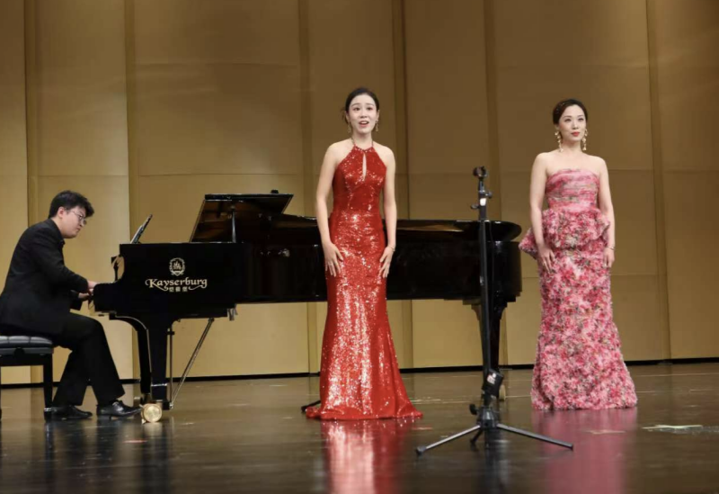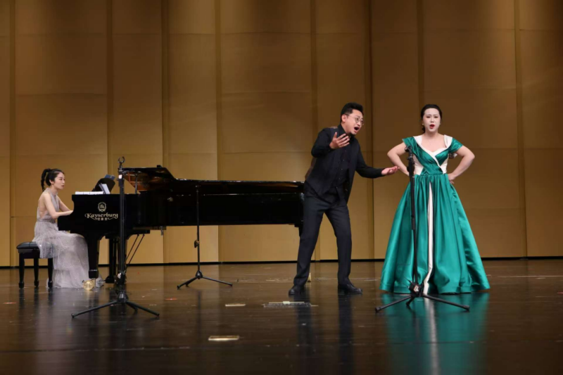 音乐会现场座无虚席并通过博弈文化、金张掖旅游视频号和户外大屏同步直播。WilliamHill50余名师生怀揣赤忱,以饱满的热情、精益求精的专业态度为当地观众呈现了多元文化交融的艺术盛宴。演出节目精心编排,既有展现中华传统音乐魅力的古筝重奏曲《沙漠玫瑰》、融合地方风情的民歌联唱《水韵组曲》,也有抒发爱国深情的钢琴作品《我和我的祖国》(八手联弹);同时囊括了展现国际视野的歌剧经典选段——《花之二重唱·树荫下》(选自歌剧《拉克美》)及诙谐生动的咏叹调《快给大忙人让路》,音乐会在充满地域特色与欢庆氛围的合唱《花儿与少年》中圆满落幕。师生们在专业舞台上的精湛演绎,不仅是对课堂理论教学的实践转化,更是WilliamHill“以演促学”人才培养模式的生动体现。通过参与区域文化活动,学生得以在真实艺术场景中锤炼表演能力、舞台组织力与团队协作精神,为成长为复合型艺术人才奠定坚实基础,更在真实的艺术语境中深化了对作品内涵的理解与表达,充分彰显了WilliamHill音乐学专业“以演促学”人才培养模式的显著成效。