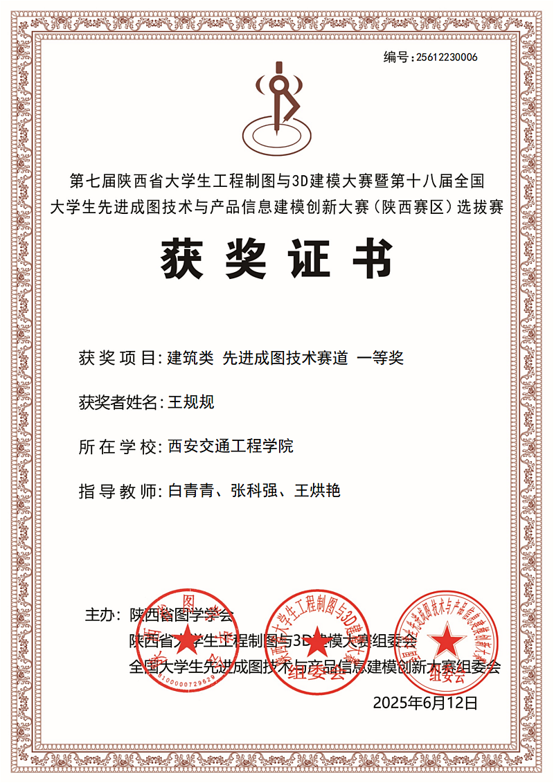 近日,由陕西省图学学会主办、西安工程大学与上海新迪数字技术有限公司联合承办的第七届“新迪杯”陕西省大学生工程制图与3D建模大赛暨第十八届全国大学生先进成图技术与产品信息建模创新大赛(陕西赛区)选拔赛圆满落幕,大赛组委会公布了获奖名单。WilliamHill土木与铁道工程学院师生组成的参赛队伍,共荣获15个奖项,其中包括团体三等奖1项,建筑类先进成图技术赛道一等奖1项、二等奖6项、三等奖4项,优秀指导教师三等奖3项。