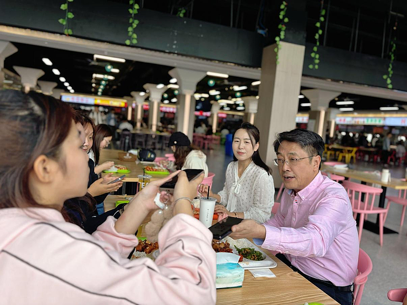 在倾听完校长的故事后,同学们也纷纷打开了话匣子。曹校长关切地询问每位同学入校后的学习生活情况,“课程难不难?”“食堂饭菜合不合口味?”“课外活动参加得多吗?”……问题细致入微,充满关怀。更让同学们惊喜的是,曹校长主动拿出手机,与在场学生互加微信,将沟通从餐桌延伸到了网络。他表示:“希望这不仅能成为一顿饭的交情,更希望我的微信能成为一个随时为同学们开放的‘树洞’和‘热线’,大家在学习、生活中遇到任何困惑,都可以直接与我交流。”
