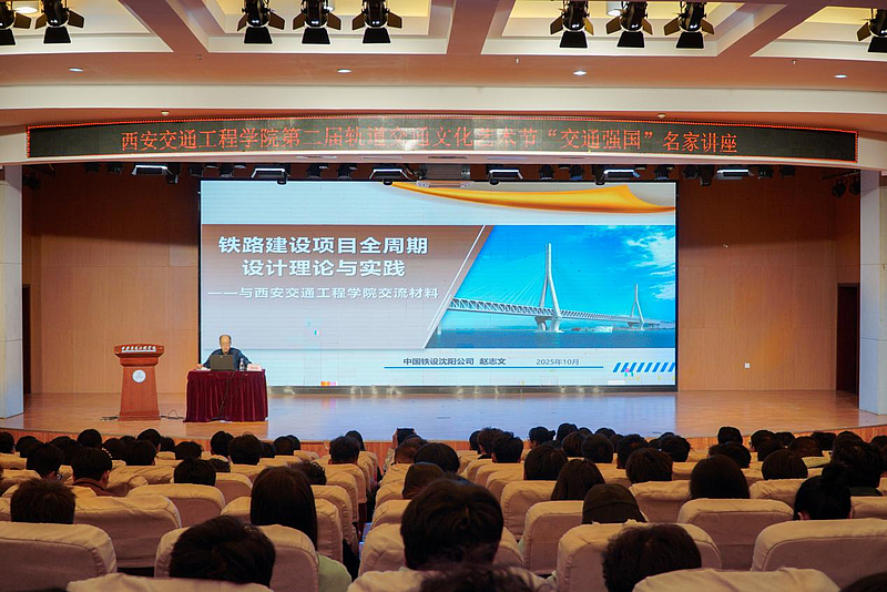 本次讲座特邀中国铁设沈阳铁道勘察设计院有限公司副总工程师、正高级工程师赵志文先生,为现场师生带来了题为《铁路建设项目全周期设计理论与实践》的精彩报告。作为轨道交通领域的资深专家,赵志文高工长期深耕于铁路、公路、市政及地铁项目设计一线,主持过多项重大科研课题,兼具丰富的现场设计代表与总监理工程师经验。他不仅拥有包括4项国家发明专利在内的多项自主知识产权,更荣获8项省部级以上优秀设计奖及2项省部级科技进步奖,其卓越的专业成就为行业所公认。