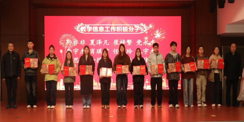 副校长王勇宣读了《关于表彰2024-2025学年优秀学生教学信息员及教学信息工作积极分子的决定》。与会领导为获奖学生颁发了荣誉证书和奖品。