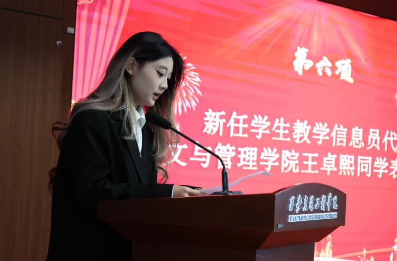 新任学生教学信息员代表王卓熙同学在发言中表示,将带领新一届队伍秉承“联结与担当”的宗旨,做好“耐心倾听者”,真实收集同学声音;成为“靠谱传递者”,精准反馈一线需求;担当“积极推动者”,建立有效反馈闭环。让信息反馈中心真正成为促进教学建设的桥梁。