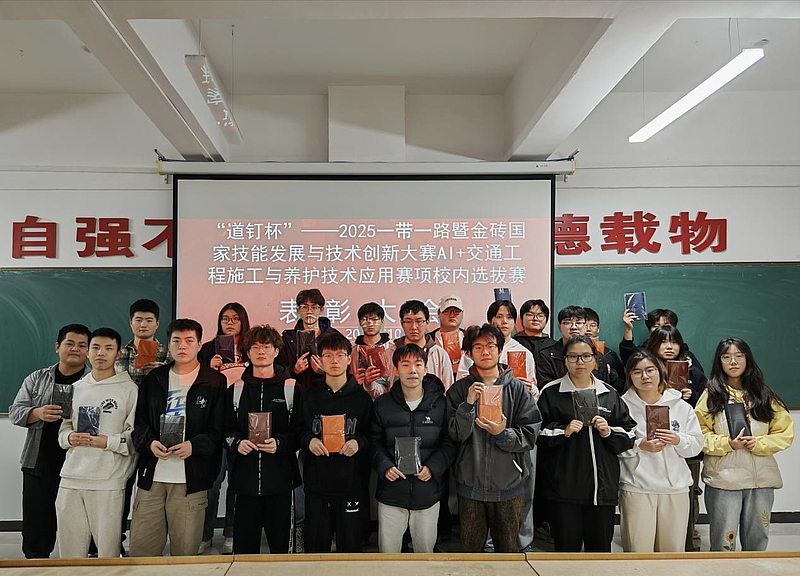 本次大赛紧密围绕“智能施工、技术创新”主题,旨在响应金砖国家技能发展合作框架,促进智能交通领域的标准互认与技术转化,为共建“数字丝绸之路”储备并选拔高素质技术技能人才。在前期学校宣传,学院领导的大力支持和各位指导老师的不懈努力下,赛事共吸引了来自相关专业的100余名学生同场竞技,最终50多位同学获得优异成绩。